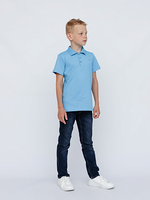 Рубашка-поло для мальчика. Модель с короткими рукавами и отложным воротником. Спереди застежка на пуговицы. На полочке декоративная вышивка.